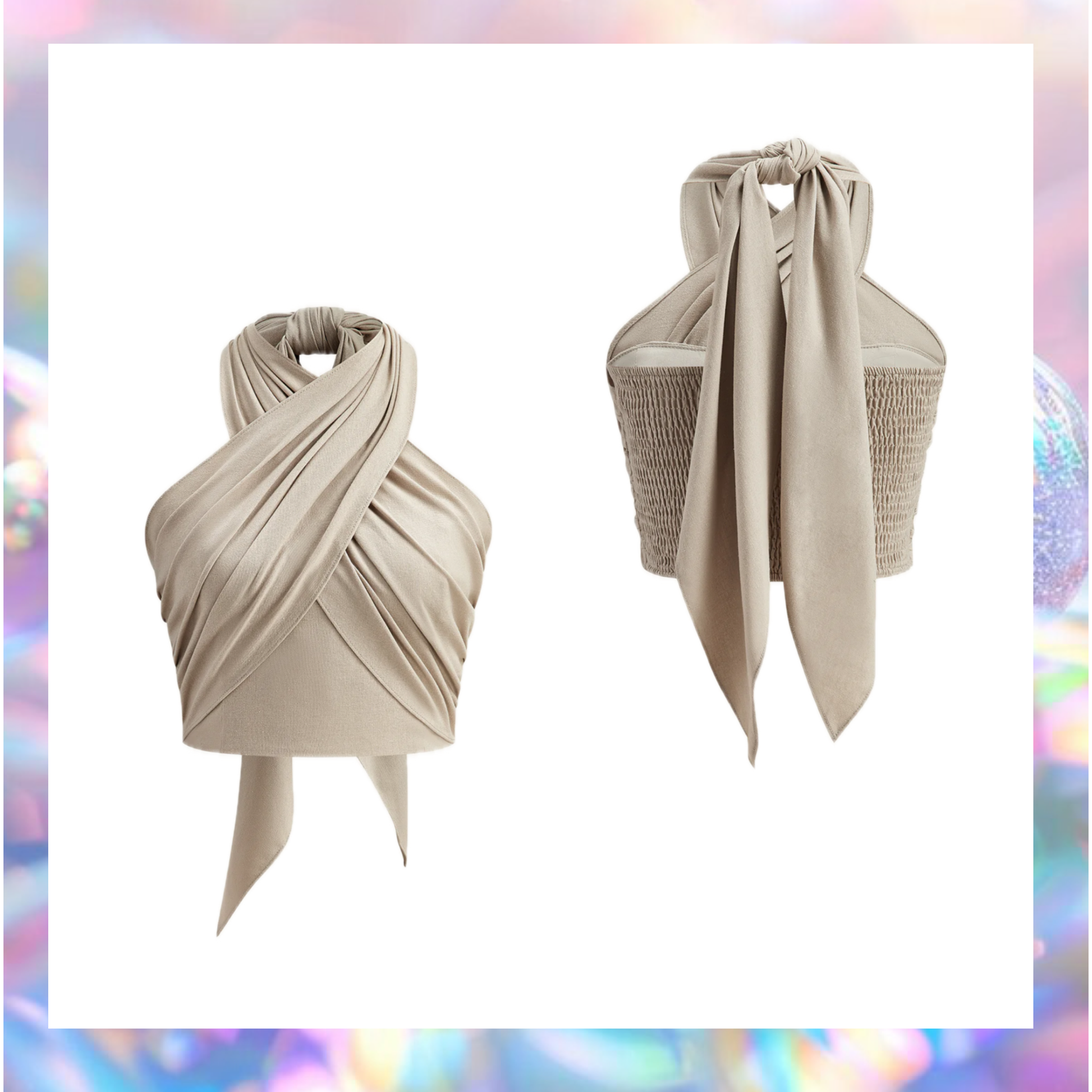 Elevate your summer style with our Cotton & Line Crisscross Halter Tank Top. The halter design, shirred knotted details, and collarless neckline add a touch of sophistication. Made with a linen blend, it offers a slight stretch for comfort. Perfect for pairing with high-waisted bottoms for a chic look.