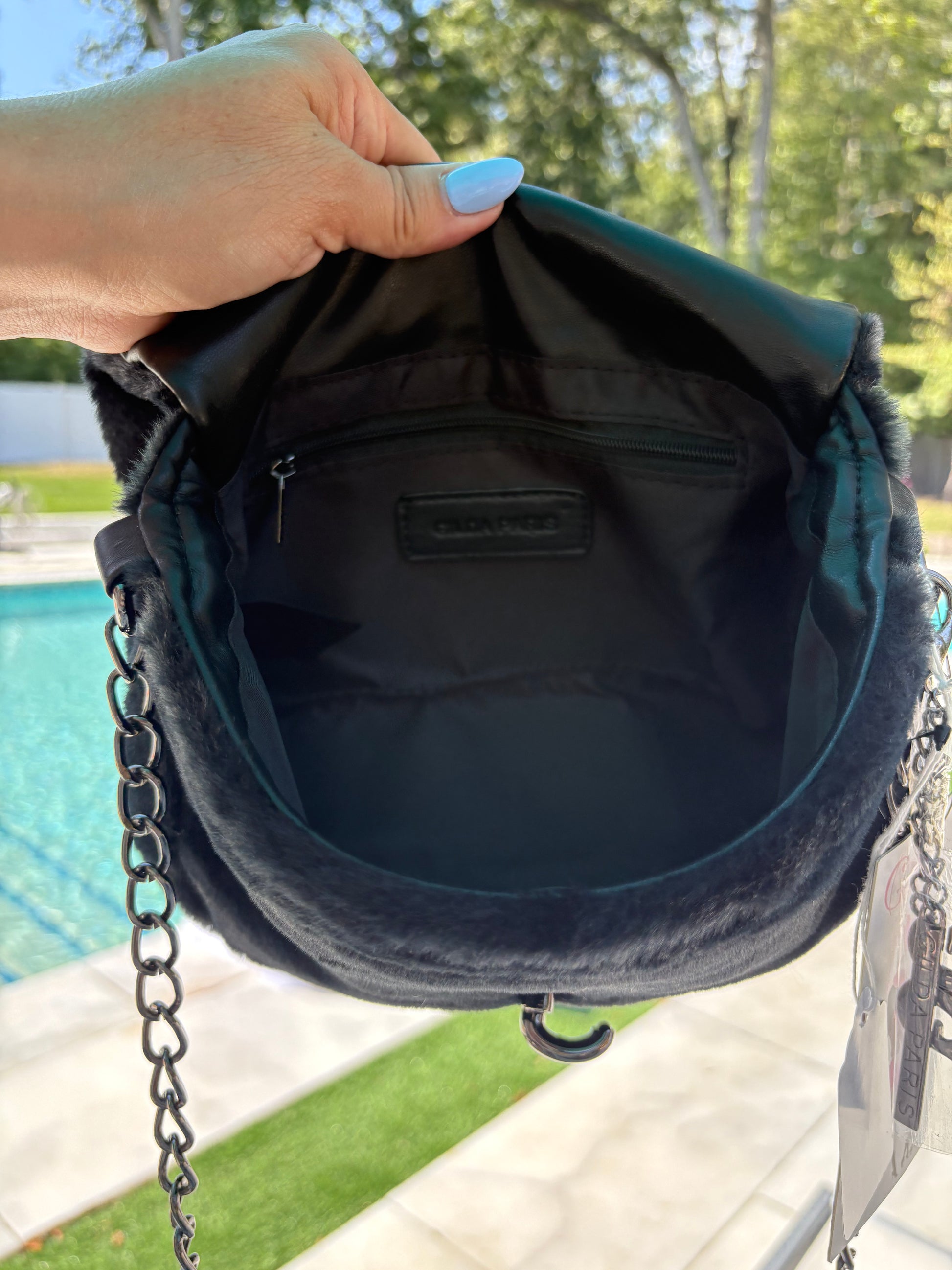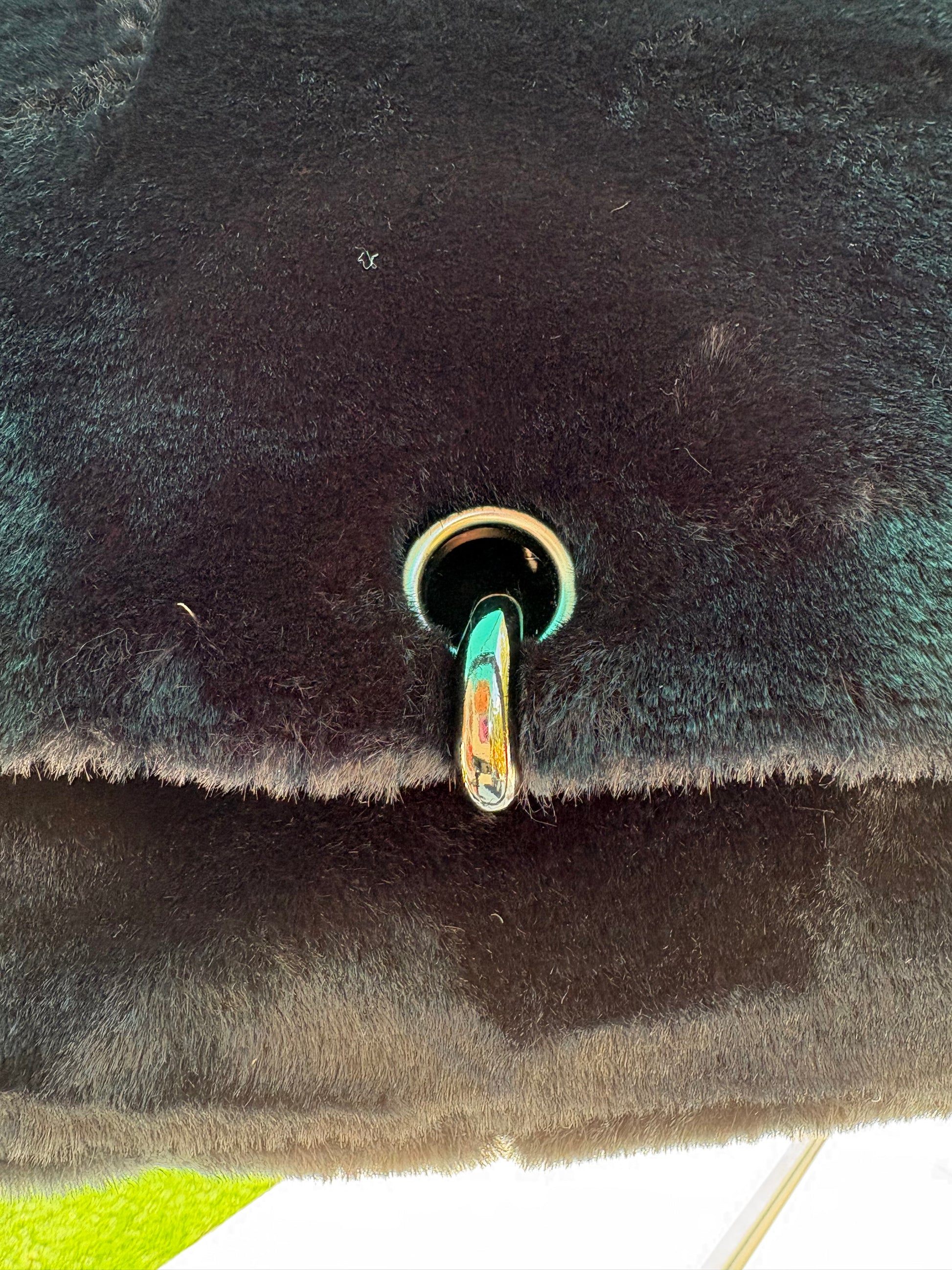Indulge in luxury with the Gilda Paris Faux Fur. Crafted with a soft and chic faux fur shell, this crossbody bag features a twist lock closure and a small zip pocket inside for added convenience. The 8" x 6" x 3" size is perfect for carrying all your essentials, while the elegant silver strap adds a touch of sophistication. Perfect for completing your fall or winter look with style.