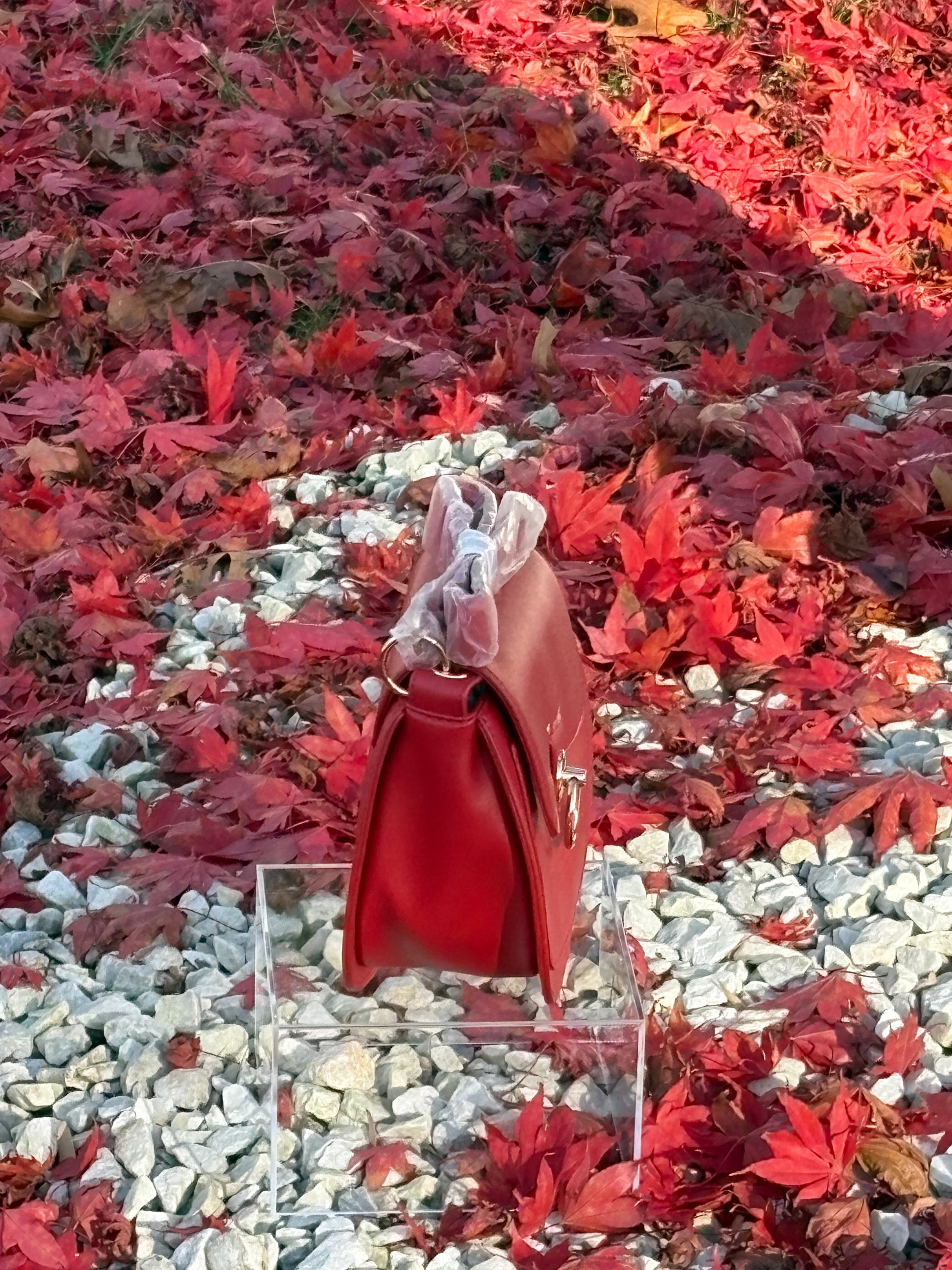 Introducing our luxurious Badgley Mischka saddle bag, crafted in exquisite red vegan leather. With stunning gold accents, including a bold ring clasp, this bag is both sophisticated and functional. Perfect for everyday wear or special occasions. Approximately 9” x 7” x 3.6”