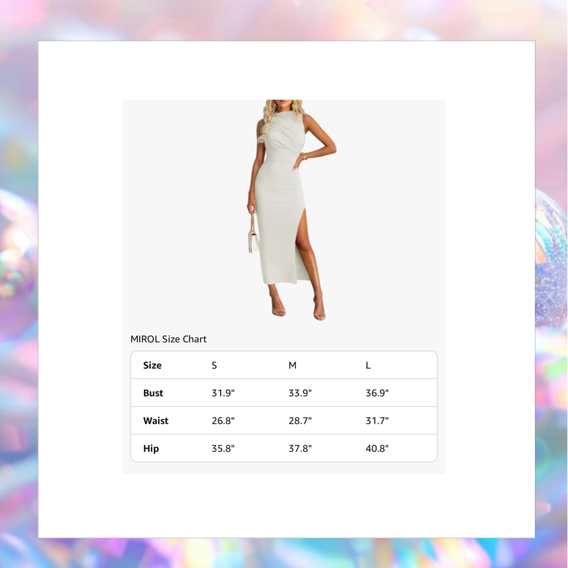 Embrace effortless elegance with our MIROL Sleeveless Bodycon Maxi Dress. The sophisticated mock neck and figure-flattering detailing create a refined silhouette, while the side split adds a subtle allure. Crafted from stretchy fabric with a hidden back zipper for a seamless fit, this solid-colored maxi transitions flawlessly from beachside strolls to evening soirées. Size small PTP 17” app with some stretch.