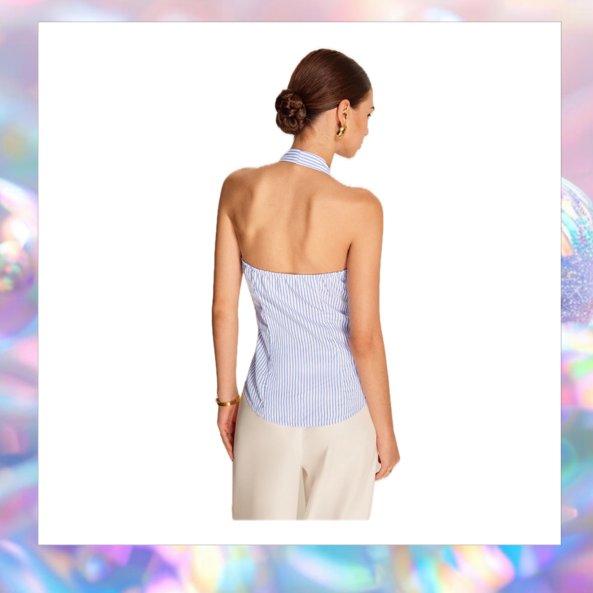 "Add some playful charm to your wardrobe with our Striped Halter Top in the Commense style. Made with 90% polyester and 10% cotton, this top is both lightweight and durable. With a regular fit and non-stretch material, the V-neck and sleeveless design will keep you feeling comfortable and chic. Perfect for any occasion!" Large- pit to you 18” app.