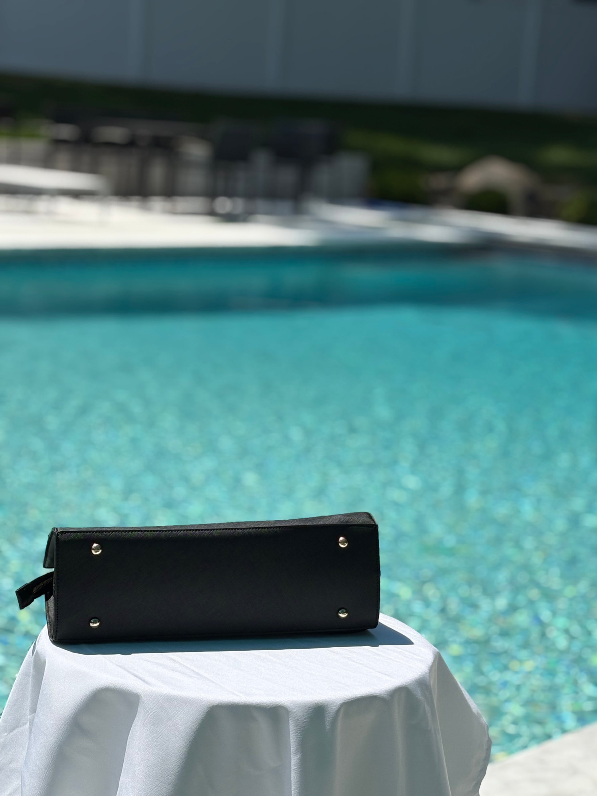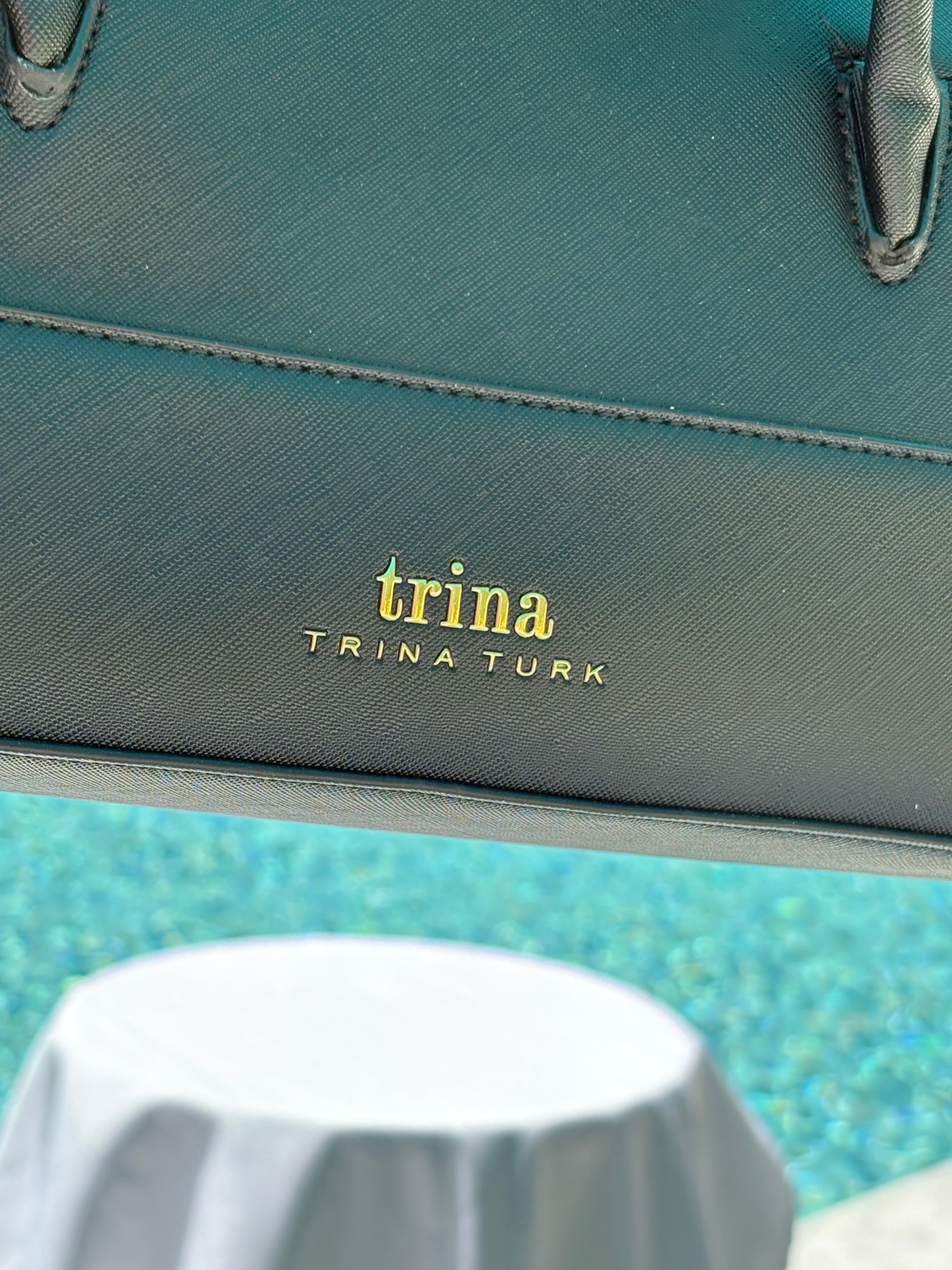 Introducing the Trina Turk Satchrel Top Handle, the epitome of style and luxury. With its sleek shoulder strap design, accentuated by a gold zipper and purse feet, this vegan leather bag is the perfect addition to any outfit. Elevate your look with this chic and sophisticated accessory.