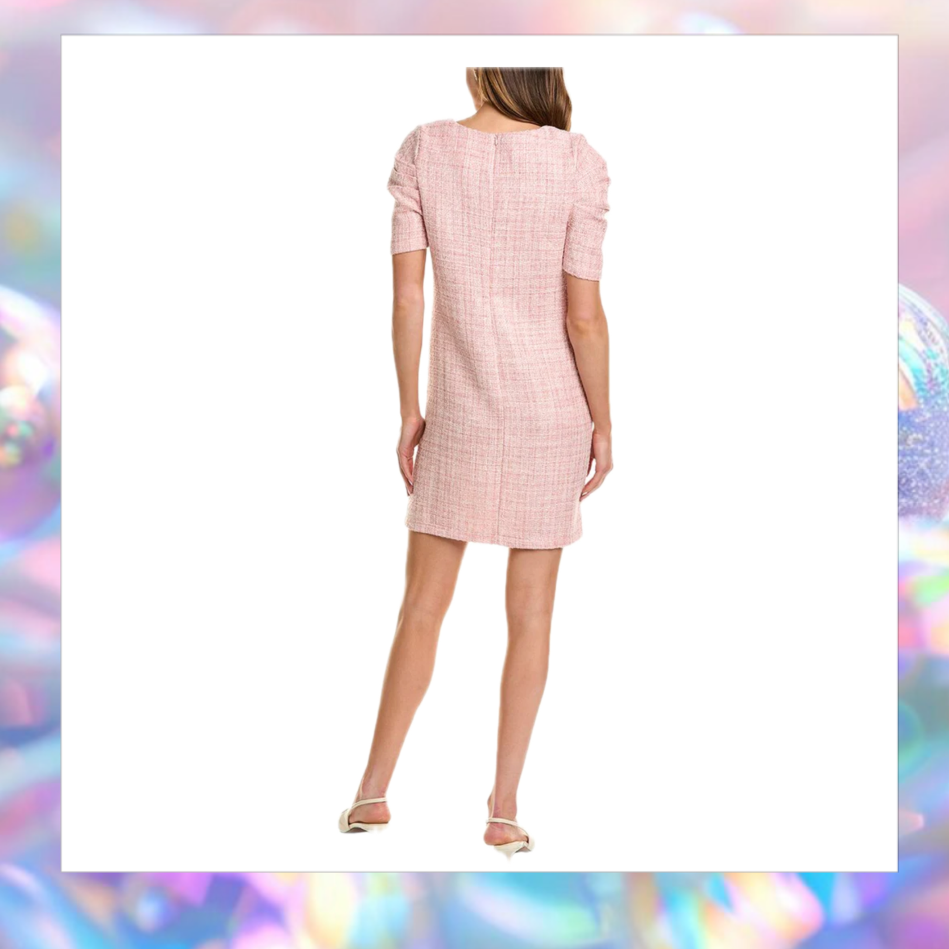 This Tweeded Dress from Area Stars exudes sophistication and luxury. With its elegant design details including a crew neck and center back zip with hook-and-eye closure, this dress is a must-have for any stylish wardrobe. Made of a high-quality blend of polyester and viscose, it is approximately 35 inches from shoulder to hem and offers a perfect, flattering fit. Add this unique and exclusive dress to your collection today. Perfect for work. Large- pit to pit 20” app.